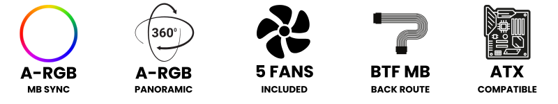 With five VORTEX 120mm A-RGB PWM fans, an integrated PWM + ARGB MBSYNC controller, and full BTF motherboard compatibility, the NEUTRON X PRO delivers advanced cooling, perfect cable management, and unmatched visual impact for professional and gaming setups alike.