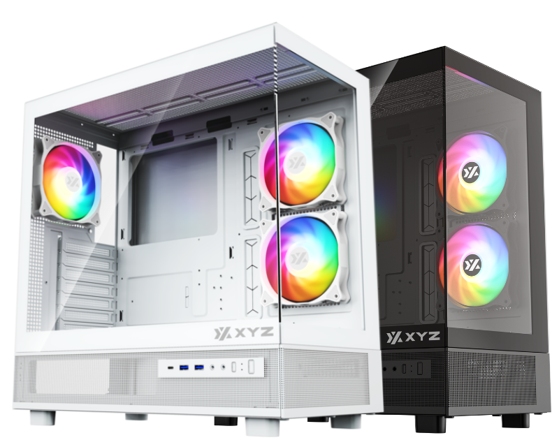 XYZ’s Neutron series redefines the PC building experience with a bold, futuristic design. These dual-chamber chassis feature a second display integrated into the side, forming a unique angle that allows you to monitor your system’s performance and display custom content in spectacular fashion. The combination of integrated A-RGB fans and an A-RGB controller gives you total control over lighting, creating a captivating ambience that suits your style.