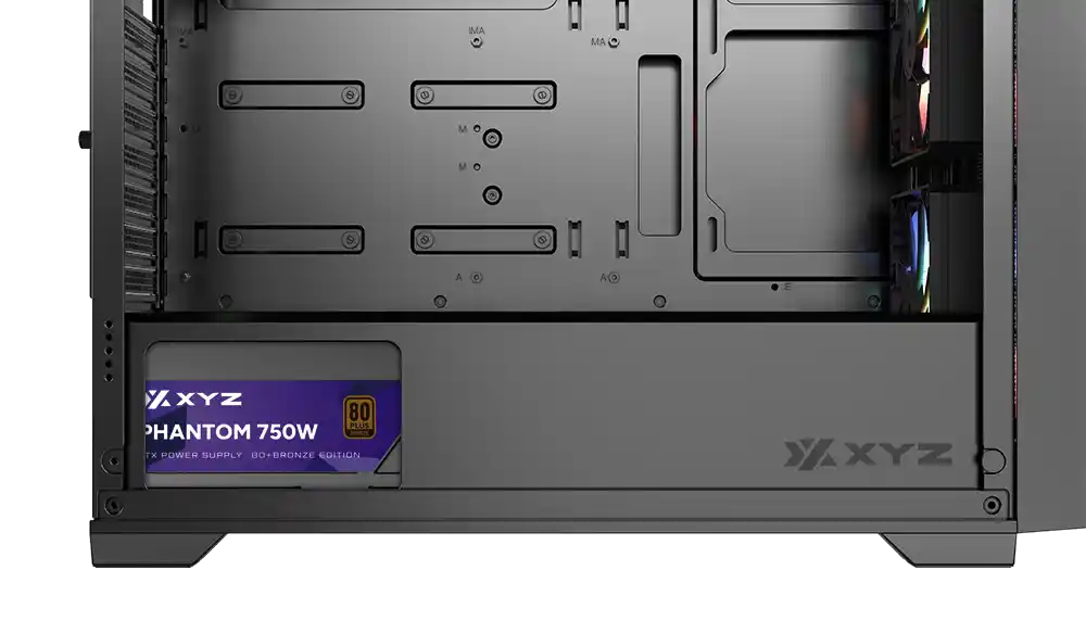 Unleash the full potential of your system with the XYZ PHANTOM 700W power supply. This high-performance PSU delivers reliable and efficient power, with a sleek design and a silent ARGB fan that will add a touch of style to your PC.